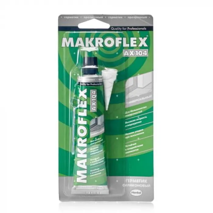 Силиконовый универсальный герметик МАКРОФЛЕКС AX104 предназначен для герметизации различных поверхностей внутри и снаружи помещений. Благодаря своей прозрачности, он идеально подходит для использования на стекле, пластике, керамике, металле и других материалах. Герметик обладает отличной адгезией, устойчив к воздействию влаги, ультрафиолетовых лучей и температурных перепадов. Прост в применении благодаря удобному дозатору. Объем упаковки - 85 мл.