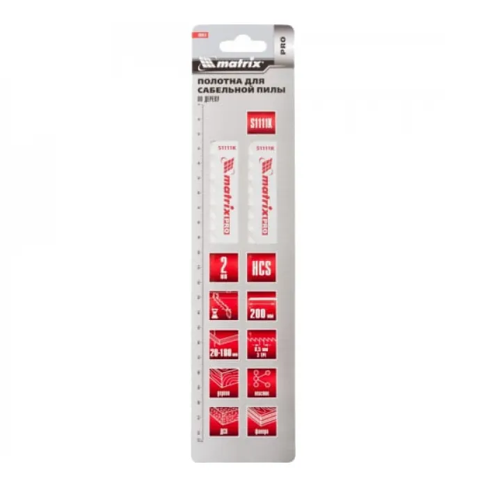 Полотна по дереву для сабельной пилы S1111K 200 / 8,5 мм, HCS, 2 шт// MATRIX Professional, Нижний Новгород