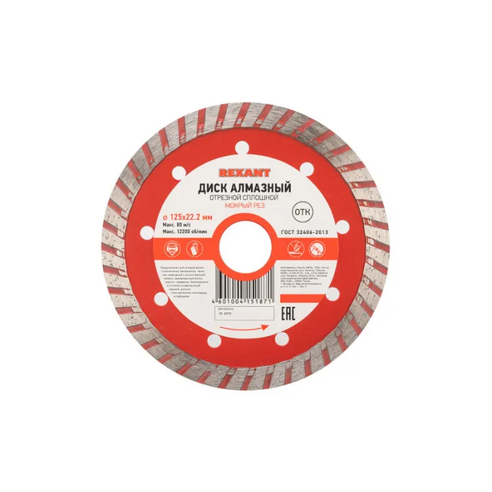 Диск алмазный отрезной Turbo 125х22.2мм Rexant 90-0121 - это надежный и универсальный инструмент, который станет незаменимым помощником для профессионалов и любителей в строительстве и ремонте.