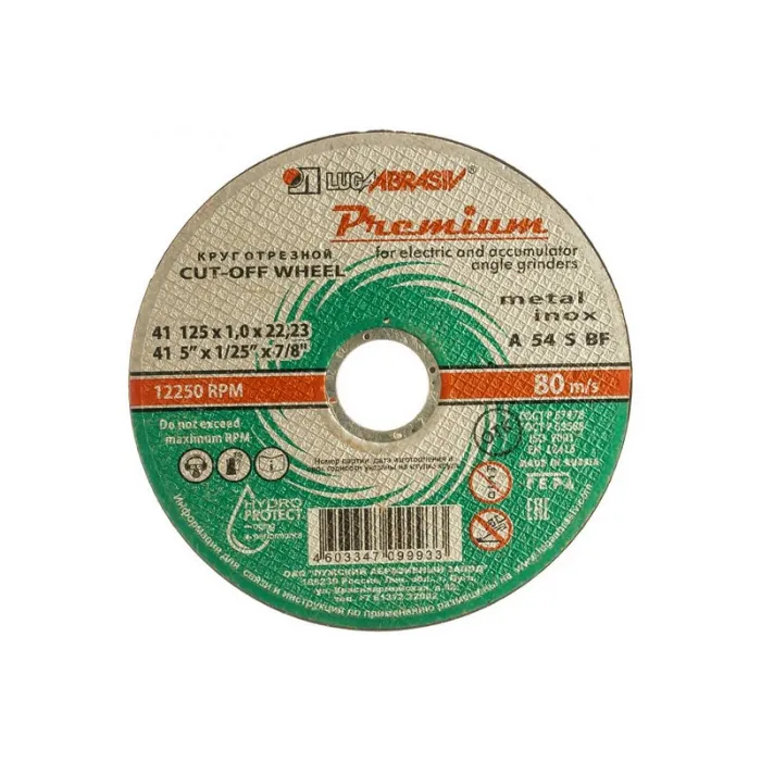 Круг отрезной по металлу+нерж., 125 х 1,0 х 22 мм, ПРЕМИУМ (Луга)// Россия, Нижний Новгород