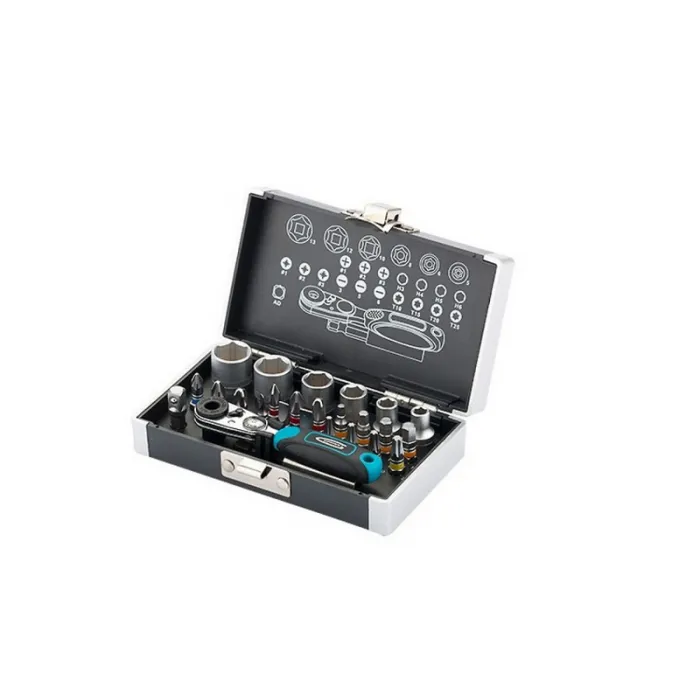 Набор бит и головок торцевых 1/4, выполненный из высококачественной стали S2, включает в себя 26 предметов, а также магнитный адаптер для удобства использования. Каждый бит и головка тщательно отшлифованы, чтобы обеспечить идеальное соединение с крепежом. Все инструменты удобно хранятся в пластиковом кейсе, который обеспечивает защиту от повреждений и удобство транспортировки. Этот набор отлично подойдет для ремонтных работ, монтажа мебели и других задач, требующих точности и надежности.