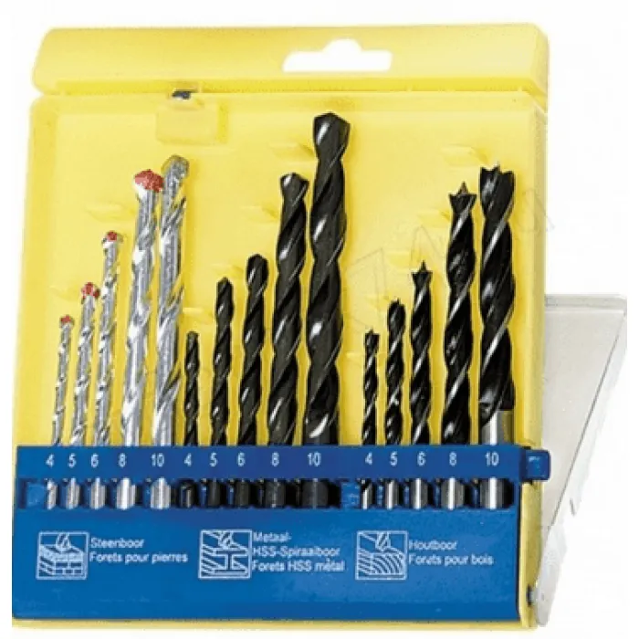 Набор сверл по бетону, металлу/ дереву 4-5-6-8-10 мм, 15 шт. пластиковый бокс, цилин.хвостовик// SPARTA, Нижний Новгород