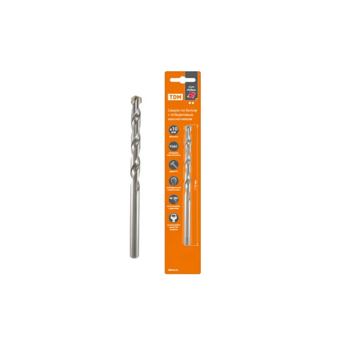 В нашем магазине Главэлектрика в Нижнем Новгороде, вы можете приобрести с доставкой по Нижнему Новгороду товар Сверло по бетону, ударное, 10×118 мм, победит. након, цилиндр. хвост, блистер 1 шт, "Рубин" TDM.
