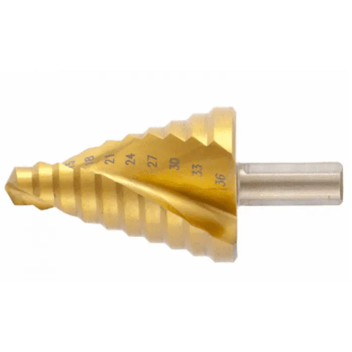 В нашем магазине Главэлектрика в Нижнем Новгороде, вы можете приобрести с доставкой по Нижнему Новгороду товар Сверло ступенчатое 9-36 мм, 8 ступеней, HSS, спираль. проф., трехгранный хвостовик // MATRIX.