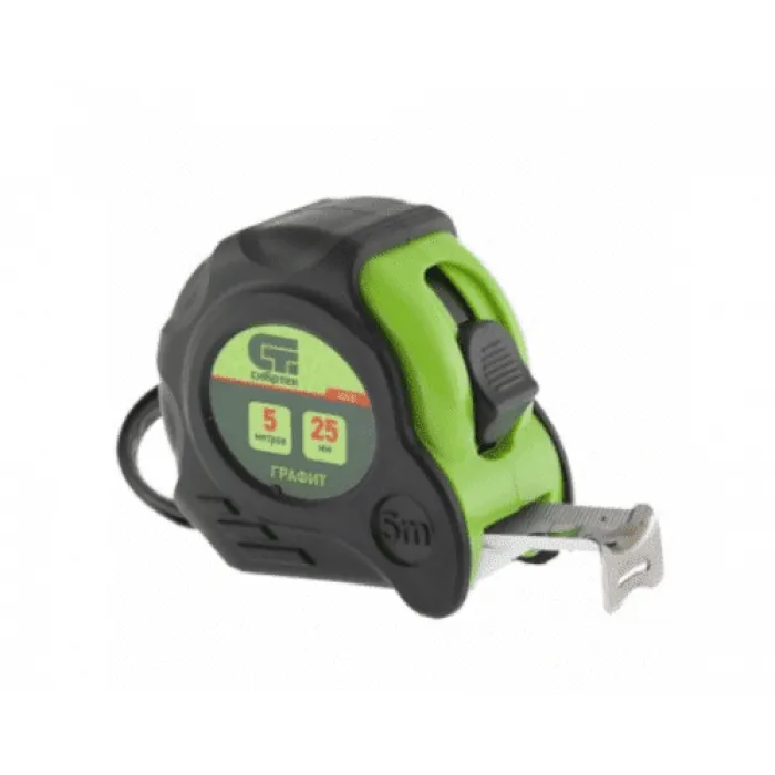 Рулетка Графит, обрезиненный корпус, амортизатор, 5 м х 25 мм// СИБРТЕХ, Нижний Новгород