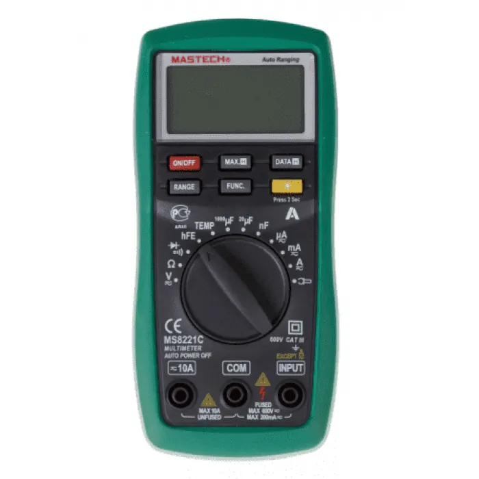 Мультиметр MS-8221С универсальный MASTECH (13-2056) - это надежный и универсальный прибор для измерения различных параметров электрических цепей. Он позволяет измерять напряжение, ток, сопротивление, емкость, частоту, а также проводить диодные и звуковые тесты. Мультиметр обладает большим и ярким ЖК-дисплеем, что обеспечивает удобство использования в различных условиях освещения. Компактный размер и надежный корпус делают его удобным для работы как в профессиональных целях, так и для домашнего использования. Встроенные функции защиты обеспечивают безопасное и надежное измерение, что делает этот мультиметр отличным выбором для электротехников и любителей электроники.