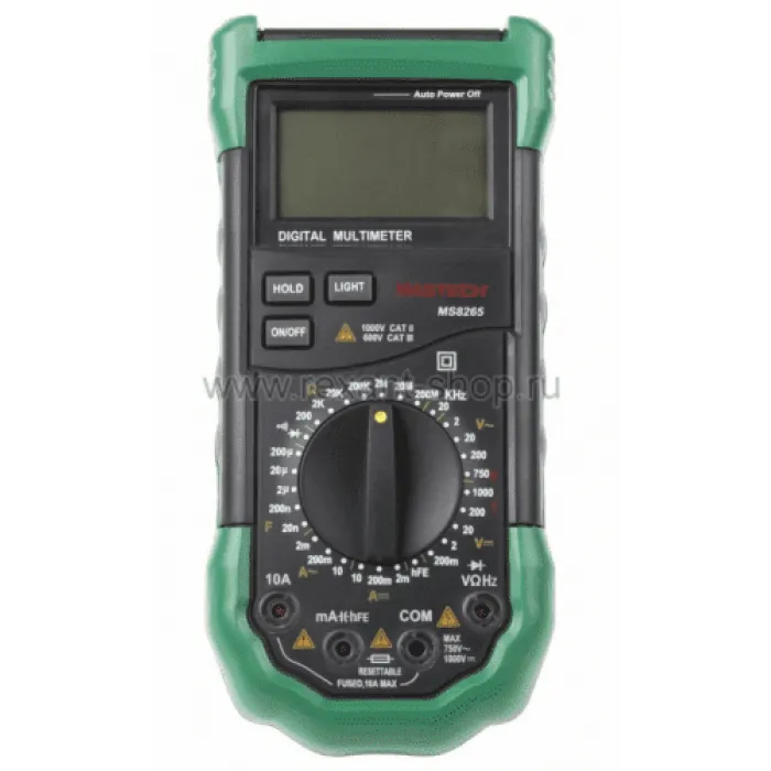 Мультиметр MS-8265 MASTECH - это профессиональный прибор, предназначенный для измерения различных параметров электрических цепей. Он обладает широким диапазоном измерений, высокой точностью и надежностью. С помощью этого мультиметра можно измерять напряжение, ток, сопротивление, ёмкость, частоту и другие важные параметры. Кроме того, устройство имеет удобный и интуитивно понятный интерфейс, что делает его идеальным выбором как для профессионалов, так и для любителей. Благодаря своей функциональности и надежности, мультиметр MS-8265 MASTECH станет незаменимым помощником при проведении электрических измерений.