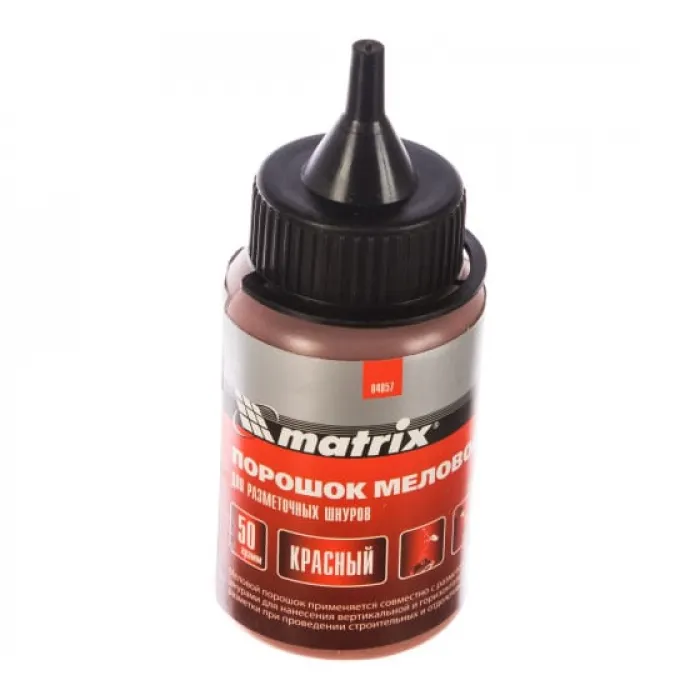 Порошок меловой красный, 50 г, для разметочных шнуров от MATRIX - это удобное и эффективное средство для проведения разметки на различных поверхностях. Благодаря яркому красному цвету порошка, разметочные шнуры будут четко видны на любом материале. Продукт легко наносится и хорошо держится на поверхности, обеспечивая точное выполнение разметочных работ. Идеально подходит как для профессионального использования, так и для домашнего мастера.
