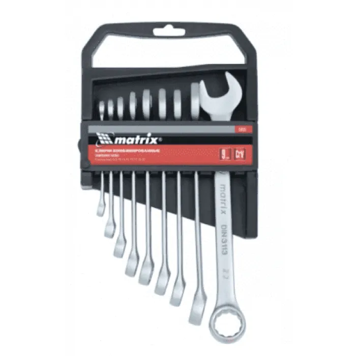 Набор ключей комбинированных, 6 - 22 мм, 9 штук, CrV, матовый хром// MATRIX, Нижний Новгород