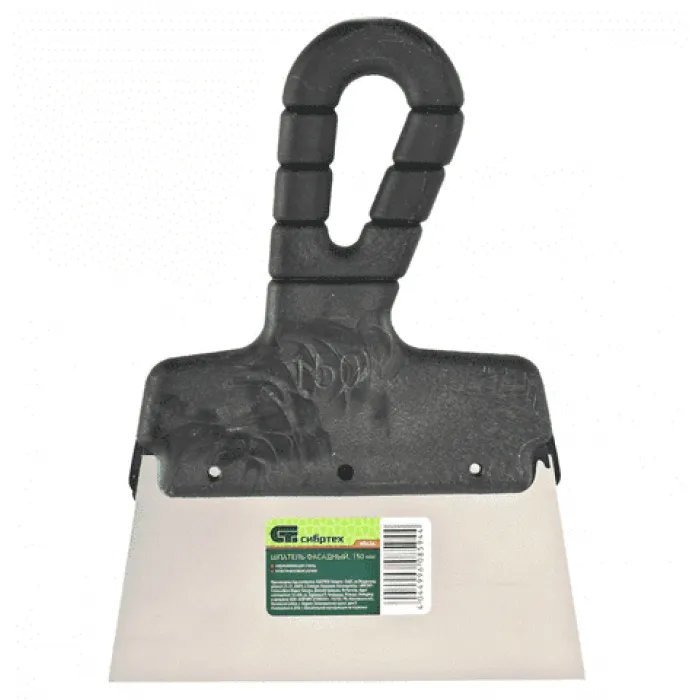 Фасадный шпатель из нержавеющей стали длиной 150 мм с пластмассовой ручкой от компании СИБРТЕХ - незаменимый инструмент для равномерного нанесения и выравнивания штукатурки, шпаклевки и других строительных материалов на фасадных поверхностях. Прочный и надежный материал из нержавеющей стали обеспечивает долгий срок службы инструмента, а удобная пластмассовая ручка обеспечивает комфортное и надежное сцепление во время работы. Позволяет профессионально и качественно выполнить отделочные работы на фасаде здания.