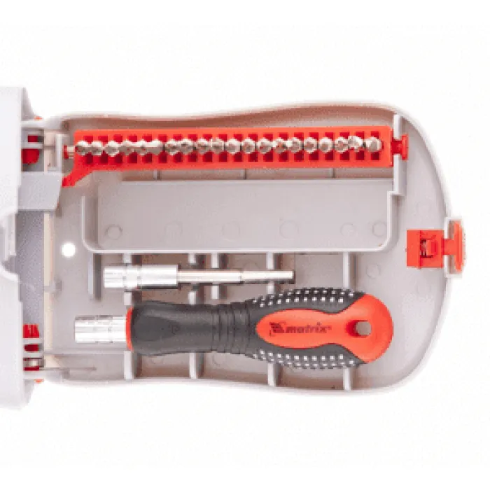 Набор отвертка с битами для точных работ, 22 предмета включает в себя все необходимое для профессиональных и домашних ремонтных работ. В комплекте представлены различные биты для отвертки, которые позволят вам легко и эффективно выполнять разнообразные задачи. Удобный пластиковый пенал обеспечивает удобное хранение и транспортировку инструментов, а также защищает их от повреждений. Набор отвертка с битами для точных работ от Matrix - надежный помощник в выполнении любых ремонтных работ.