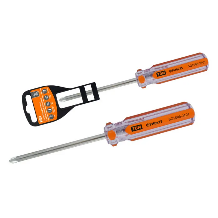 Отвертка крестовая, прозрачная рукоятка, углеродистая сталь, тип PH1 x 75 мм, серия "Гранит" TDM, Нижний Новгород