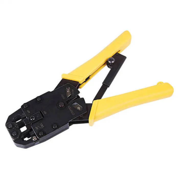 Инструмент оснащен удобными рукоятками для комфортной работы и обеспечивает точный и прочный обжим разъемов.