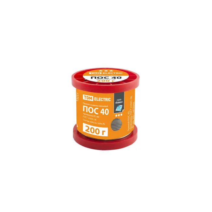 Припой ПОС 40, проволока, ГОСТ 21931-76, Ø1 мм, 200 г, катушка, серия "Алмаз" TDM, Нижний Новгород