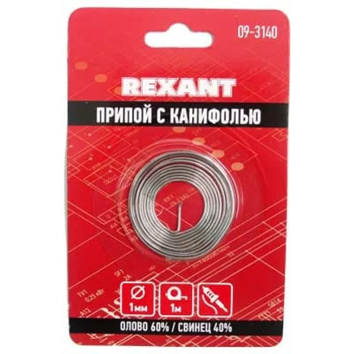 Припой с канифолью 10 гр. d=1.0 мм (Sn60 Pb40 Flux 2.2%) REXANT арт.09-3140, Нижний Новгород