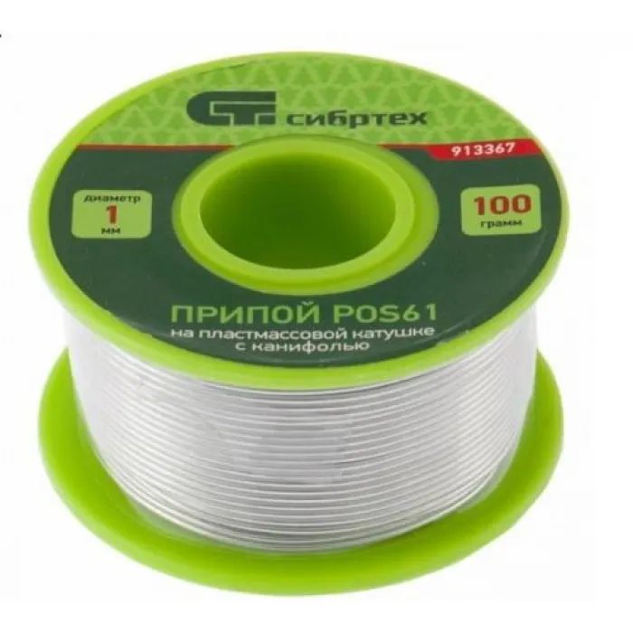 Припой с канифолью Сибртех D 1мм, 100 г, POS61, на пластмассовой катушке , Нижний Новгород
