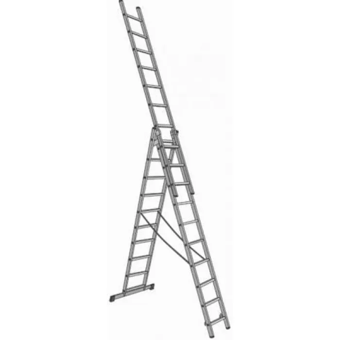 Лестница 3-секционная алюминиевая 3*10 ступеней, модель 263/440/627, ЛА3х10 от производителя Народная TDM - надежный и удобный инструмент для выполнения работ на высоте. Изготовлена из прочного алюминиевого сплава, обеспечивающего легкость и прочность конструкции. Снабжена 3 секциями по 10 ступеней каждая, что обеспечивает удобство в использовании и позволяет достичь значительной высоты. Идеальный выбор для домашнего использования или профессиональных задач.
