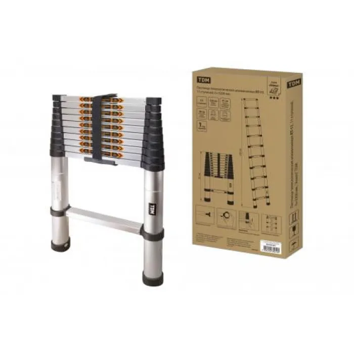 Лестница телескопическая алюминиевая ЛТ-11, 11 ступеней, h=3200 мм, "Алмаз" TDM, Нижний Новгород