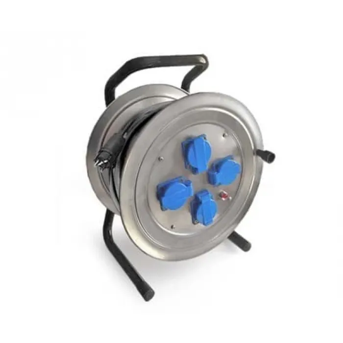 Силовой удлинитель на металлической катушке 4 гн. служит для подключения электрических приборов вдали от основного источника питания. Изделие подходит для работы в тяжелых условиях, например: на строительных площадках, в промышленности и т.д. Удлинитель оснащен вставкой с четырьмя розетками с заземляющими контактами.