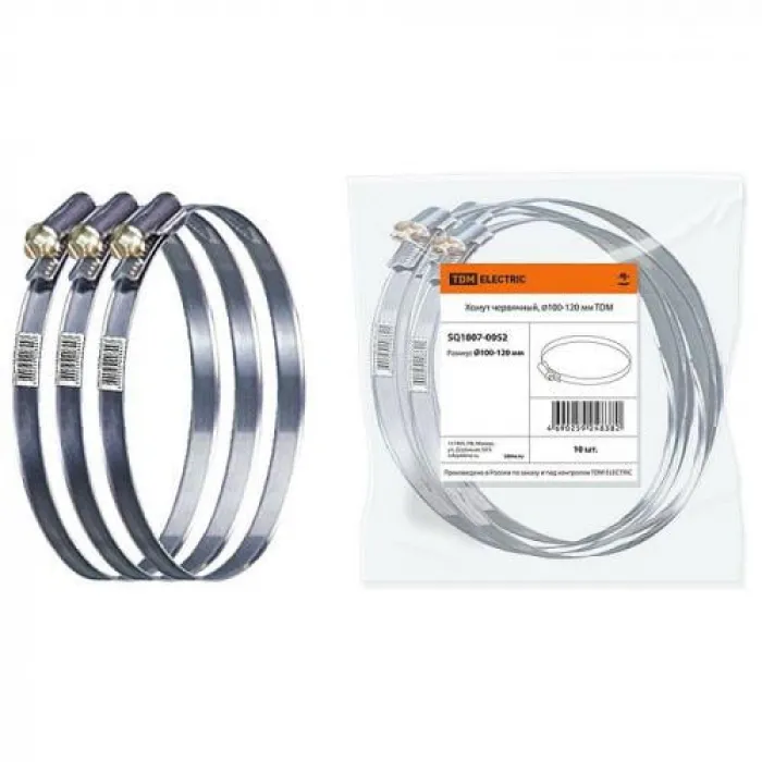 Приобретите качественный хомут червячный 100-120 мм // TDM для надежного и прочного крепления различных элементов. Этот универсальный инструмент изготовлен из высококачественного материала, что обеспечивает его долговечность и надежность в работе.