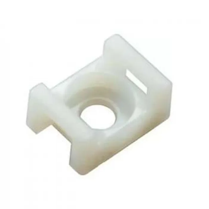 Электромонтажные работы по проведению проводки не обходятся без площадки для крепления стяжки. Она позволяет с помощью всего одного винта или самореза прикрепить пучки проводов, стянутые хомутом, к абсолютно любой поверхности. Тем самым произвести как временную, так и постоянную организацию кабельной проводки.Плюс к этому, площадку для крепления стяжки используют также и для закрепления иных нетяжёлых предметов. Выполнена площадка из пластика белого цвета и оснащена специальным отверстием под хомут.