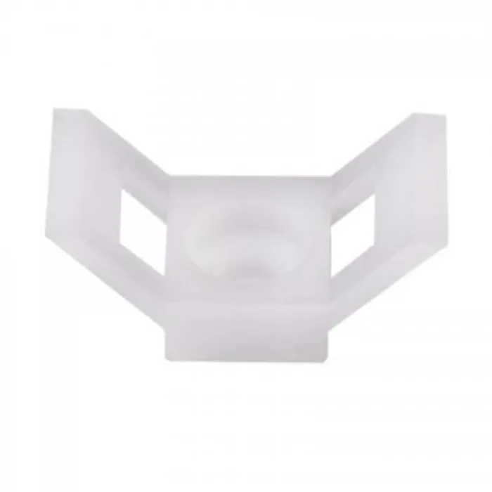 Данная площадка имеет V-образную форму, посередине которой отверстие для крепления к поверхности с помощью винта (шурупа, быстрого монтажа, самореза, болта), а по сторонам расположены пара пазов для проводки кабельной стяжки.