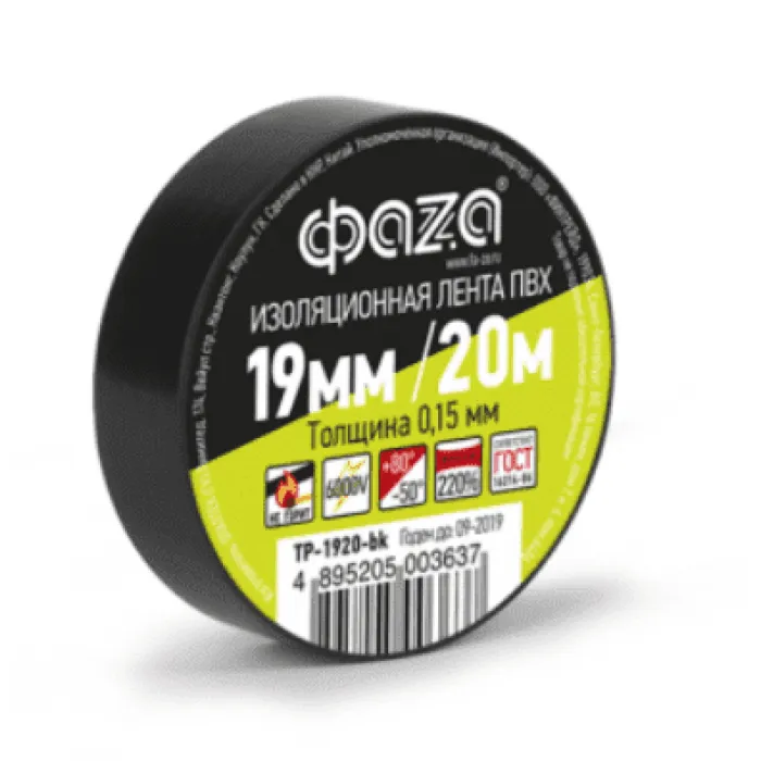 Изолента ПВХ черная 19мм 20м ФАZА NEW, Нижний Новгород