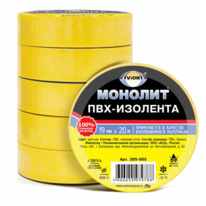В нашем магазине Главэлектрика в Нижнем Новгороде, вы можете приобрести с доставкой по Нижнему Новгороду товар Изолента ПВХ жёлтая 19мм 20м AVIORA-МОНОЛИТ.