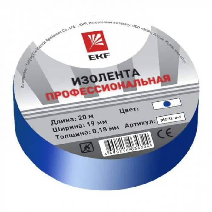 Изолента ПВХ синяя 19мм 20м 0.18мм профессиональная класс А EKF, Нижний Новгород