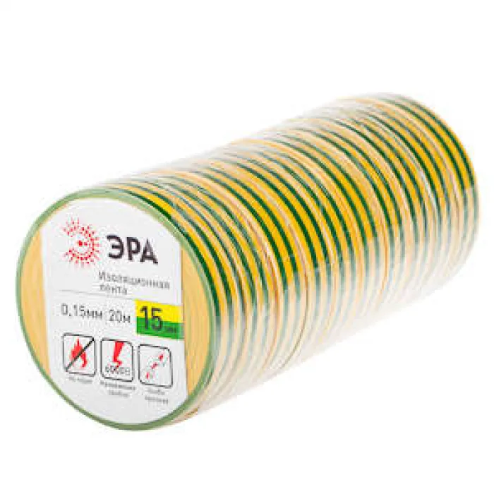 В нашем магазине Главэлектрика в Нижнем Новгороде, вы можете приобрести с доставкой по Нижнему Новгороду товар Изолента ПВХ желто-зеленая 15мм 20м ERA.