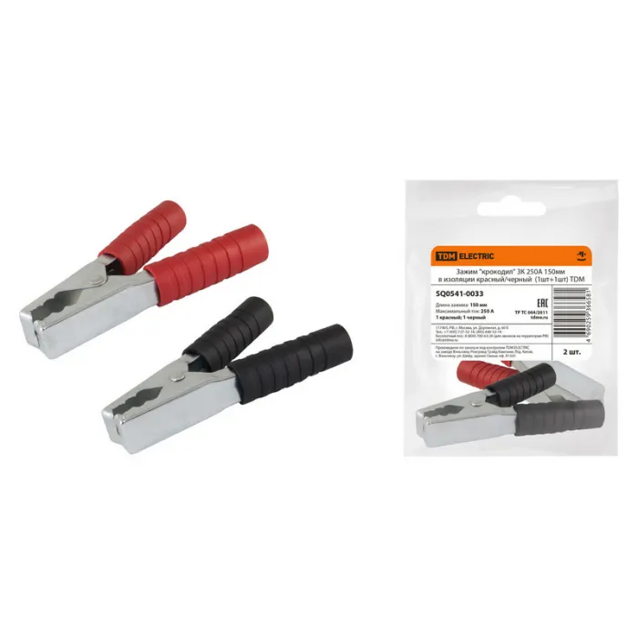 Зажим крокодил 250А 150мм ЗК в изоляции красный/черный (1шт+1шт) TDM, Нижний Новгород