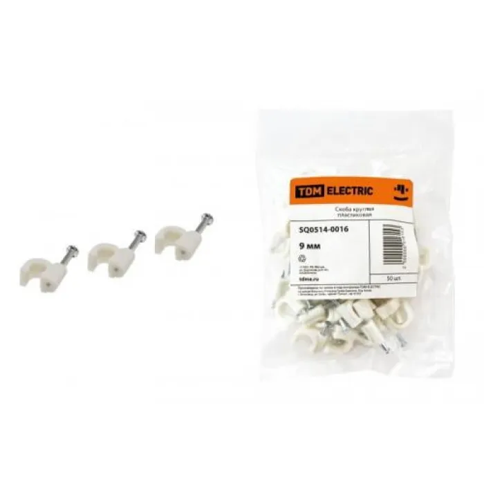 Скоба крепежная d9 (50шт в уп-ке) круглая пластиковая TDM, Нижний Новгород