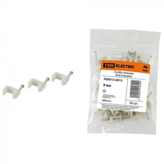 Скоба крепежная d9 (50шт в уп-ке) плоская пластиковая TDM, Нижний Новгород