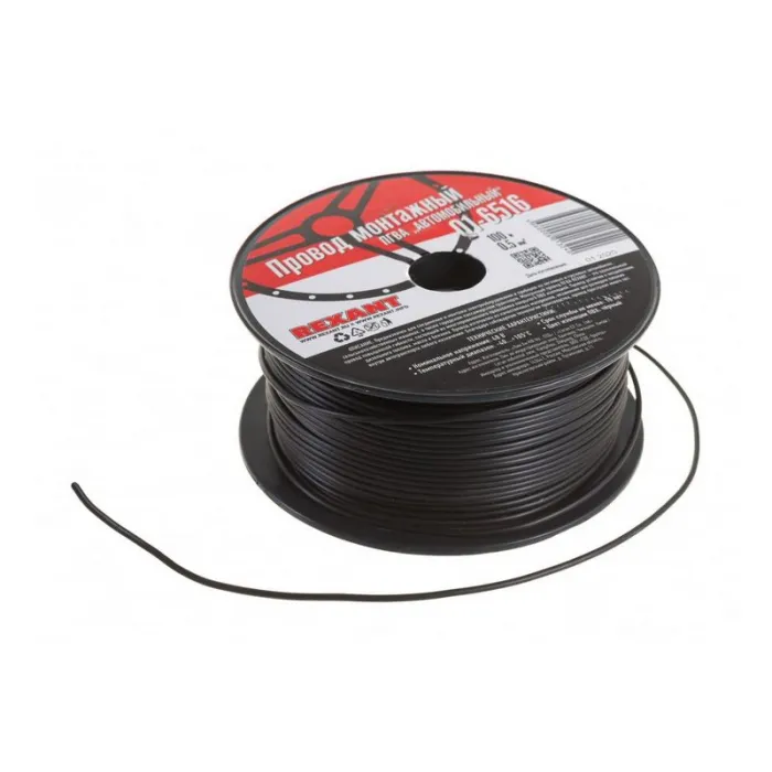 Провод автомобильный ПГВА 0.5 черный 100м (м) 01-6516, REXANT, Нижний Новгород