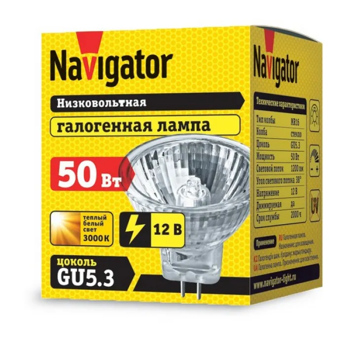 Лампа галогенная Navigator MR11 50W 230V GU5.3 2000h, 94224, Нижний Новгород