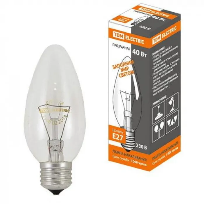 Лампа накаливания свеча TDM 40 Вт-230 В-Е27, SQ0332-0010, Нижний Новгород