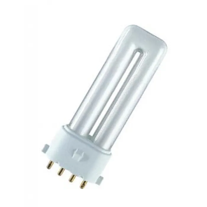 Компактная люминесцентная лампа OSRAM DULUX S/E для электронных ПРА (ЭПРА). Лампы могут работать от батарей, солнечных генераторов или от сети. Могут работать при низком и высоком напряжении. Срок службы в 10 раз больше, чем лампы накаливания аналогичной яркости.
