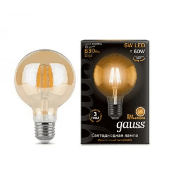 Лампа светодиодная Gauss LED Filament G95 6W E27 2400K(105802006) Цветовая температура: 2400KЦоколь: E27