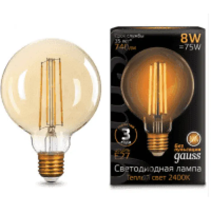 Лампа Gauss LED Filament G95 E27 8W Golden 2400К 105802008 Артикул: 105802008Производитель: Gauss