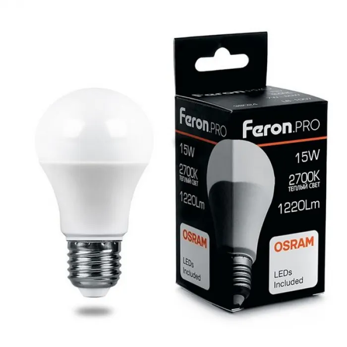 Лампа светодиодная Feron.Pro A60 LB-1015 Шар E27 15W 2700K, 38035 – это идеальное решение для освещения вашего дома или рабочего пространства. Она обеспечивает яркий и приятный свет, создавая комфортную атмосферу.