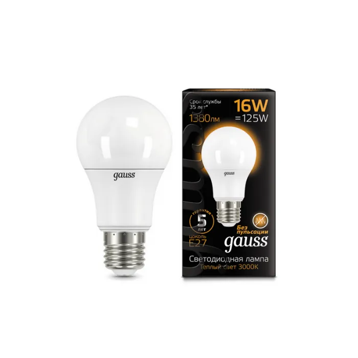 Лампа светодиодная Gauss A60 16W E27 3000K, 102502116, Нижний Новгород
