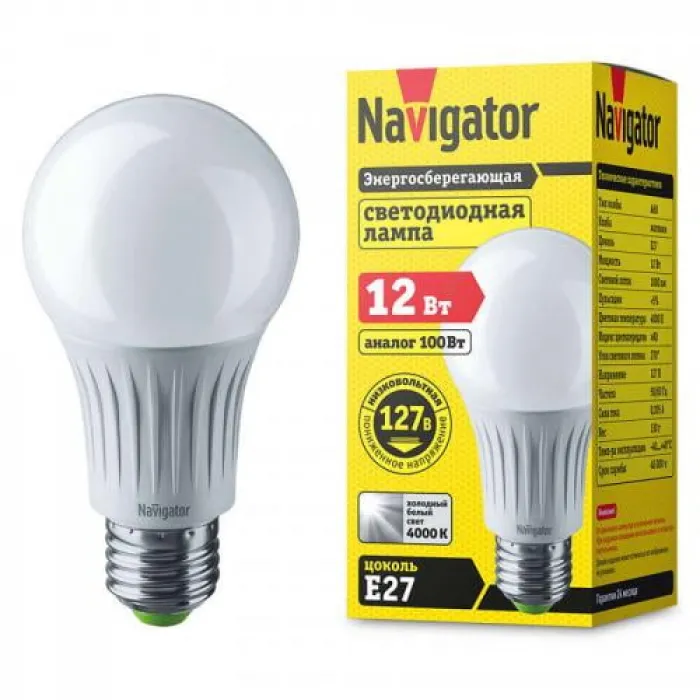 В нашем магазине Главэлектрика в Нижнем Новгороде, вы можете приобрести с доставкой по Нижнему Новгороду товар Лампа светодиодная Navigator A60 NLL-A60-12-127-4K-E27, 61665.