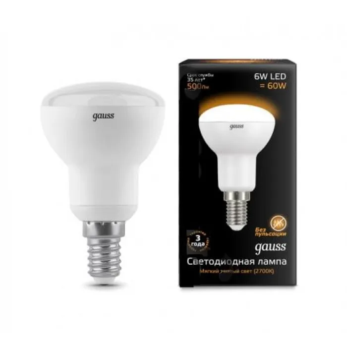 Лампа светодиодная Gauss R50 E14 6W 2700K/3000К, 106001106, Нижний Новгород