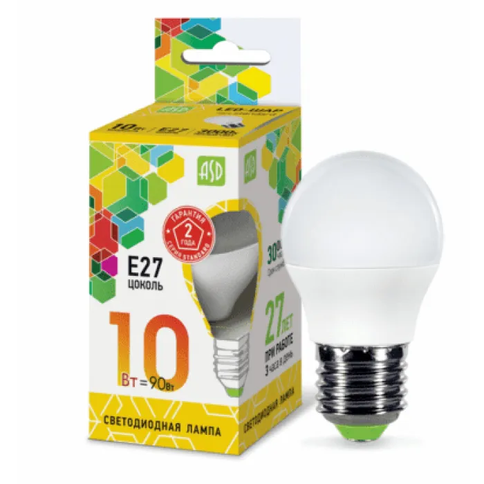 В нашем магазине Главэлектрика в Нижнем Новгороде, вы можете приобрести с доставкой по Нижнему Новгороду товар Лампа светодиодная ASD G45 (Шар) 10Вт 230В Е27 3000К 900Лм, 4690612015477.