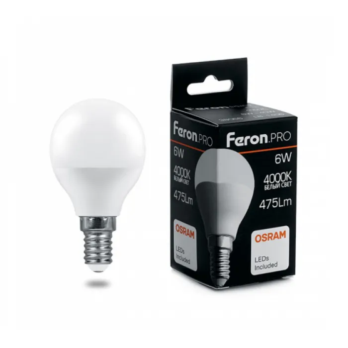 Лампа светодиодная Feron.PRO G45 (Шар) LB-1406 E14 6W 4000K, 38066, Нижний Новгород