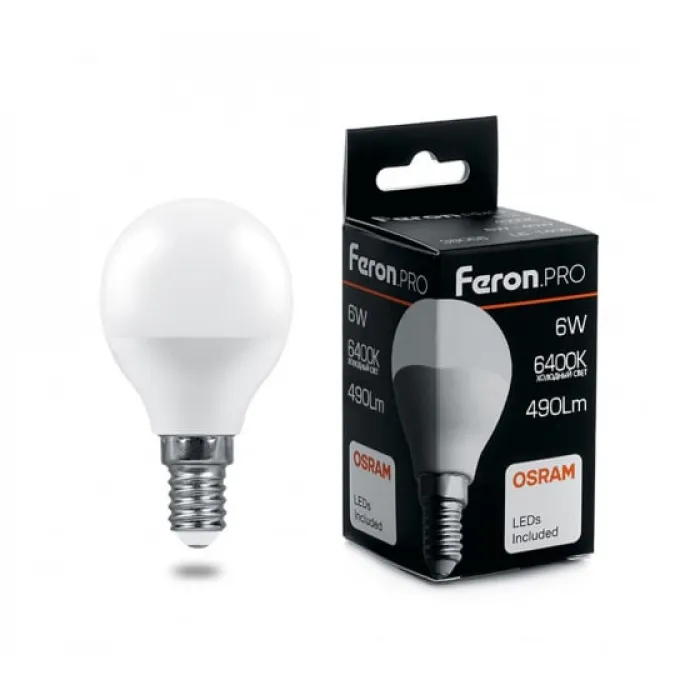 Лампа светодиодная Feron.PRO G45 (Шар) LB-1406 E14 6W 6400K, 38067, Нижний Новгород