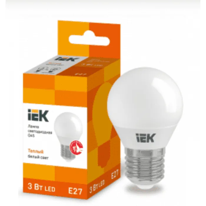 Лампа светодиодная IEK G45 (Шар) 3Вт 230В 3000К E27, LLE-G45-3-230-30-E27, Нижний Новгород