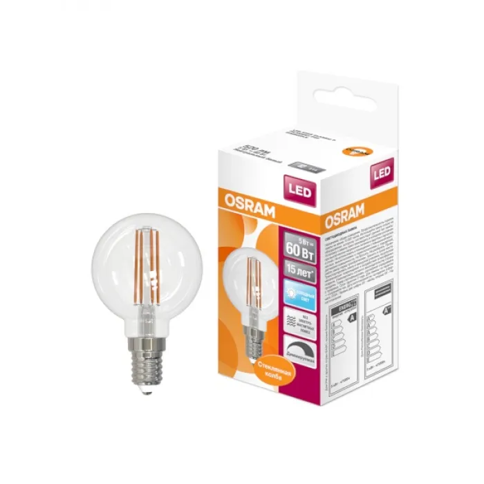 Лампа филаментная диммируемая OSRAM G45 (Шар) 5Вт E14 520 Лм 4000К, 4058075230446, Нижний Новгород