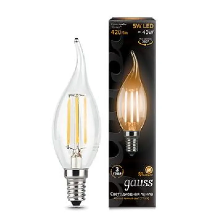 Лампа филаментная светодиодная Gauss свеча на ветру E14 5W 2700K/3000К, 104801105, Нижний Новгород