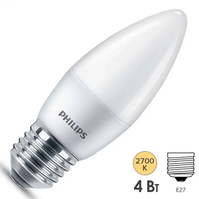 Лампа светодиодная PHILIPS свеча B35 4W (40W) 827 220V E27 FR 330lm - это энергоэффективная лампа для освещения помещений. Светильник имеет цоколь E27, что делает его легким в установке. Свет лампы приятный и мягкий, соответствует теплоте ламп накаливания мощностью 40 Вт. Светодиодная технология обеспечивает долгий срок службы лампы и экономию электроэнергии. Яркость лампы составляет 330 люмен, что делает ее идеальным выбором для создания уютной атмосферы в доме или офисе.